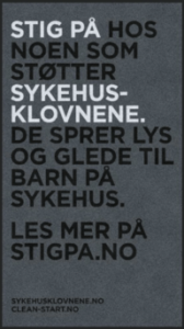 Sykehusklovnene er en ideell organisasjon som ved sine aktiviteter på norske sykehus bidrar til livsglede og fortjente avbrekk for barn i alvorlige livssituasjoner. Les mer på sykehusklovnene.no